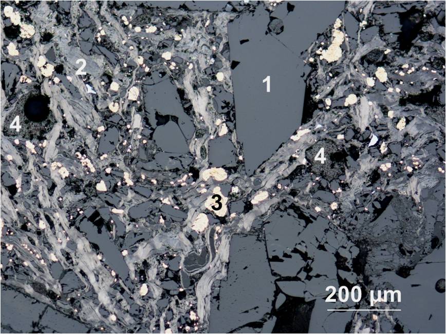 镁碳砖 (1.电熔镁砂,2.石墨,3.金属铝,4.固体树脂)
